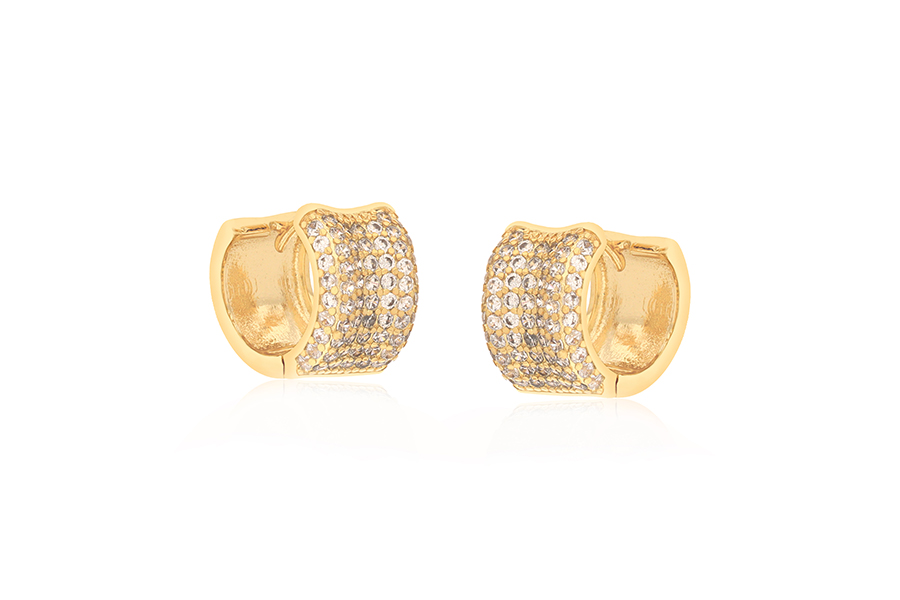 BRINCO BANHADO EM OURO 9mm LARGURA COM ZIRCÔNIAS BRANCAS OU COLORIDAS