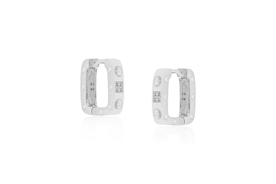 BRINCO BANHADO EM RÓDIO BRANCO, PONTO DE LUZ 3mm, CRAVAÇÃO INGLESA