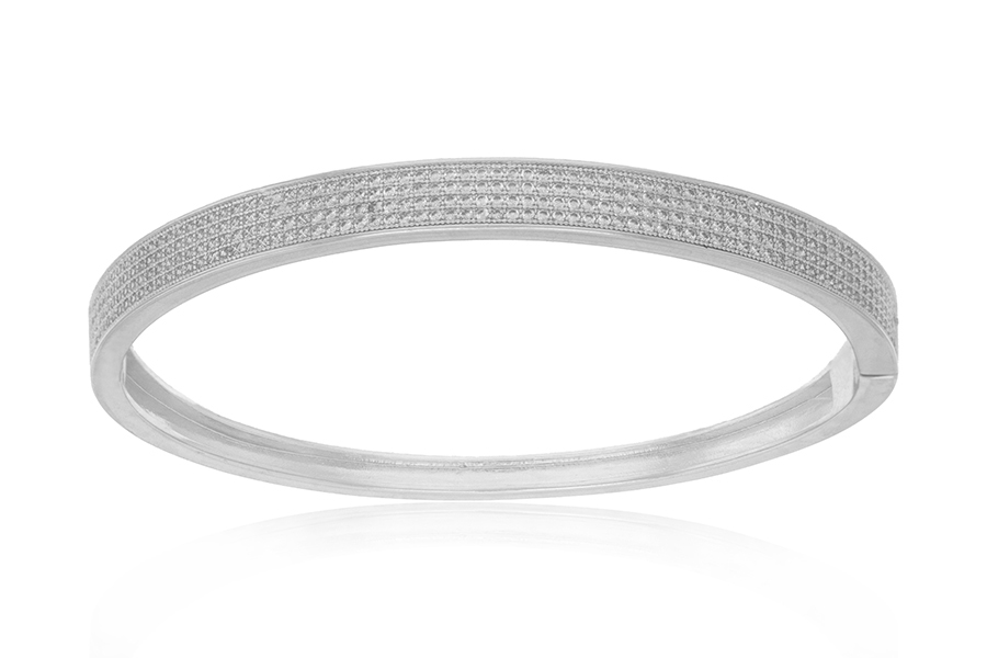 BRACELETE BANHADO EM RÓDIO BRANCO, 4 FILEIRAS DE ZIRCÔNIAS E 6,50cm COMPRIMENTO