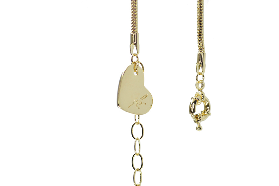 PULSEIRA BANHADA EM OURO, RABO DE RATO 2,50mm ESPESSURA E CORAÇÃO FÉ 19mm LARGURA