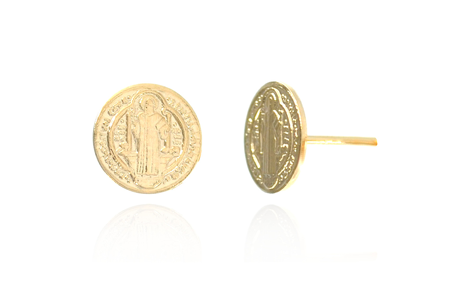 BRINCO BANHADO EM OURO, INFANTIL, PONTO DE LUZ E CORAÇÃO 4,50mm LARGURA, COM TARRAXA BABY