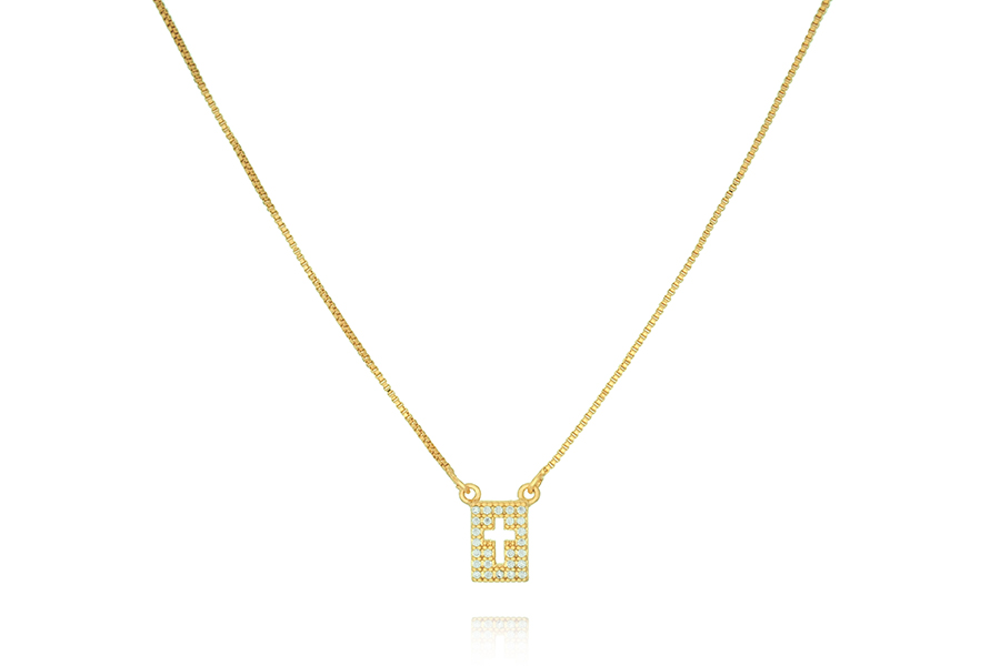 GARGANTILHA BANHADA EM OURO, VENEZIANA 0,80mm, 40cm COMPRIMENTO E ZIRCÔNIA QUADRADA 8mm, PARA QUALQUER COR DE PEDRA