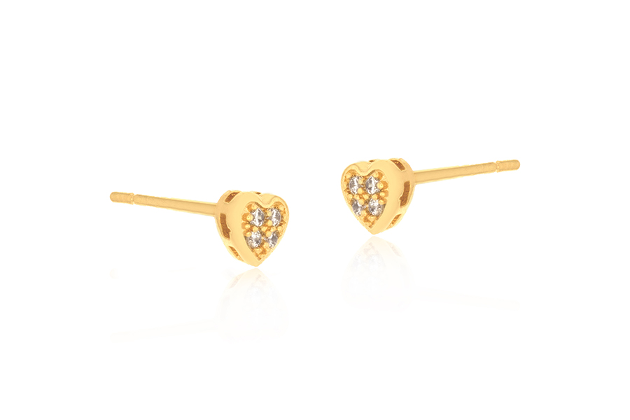 BRINCO BANHADO EM OURO, INFANTIL, PONTO DE LUZ E CORAÇÃO 4,50mm LARGURA, COM TARRAXA BABY