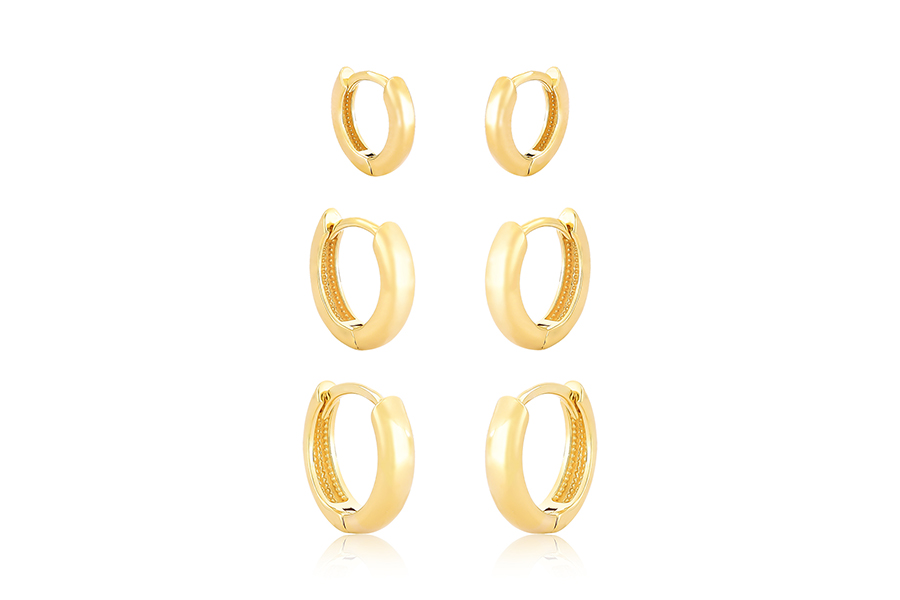CONJUNTO BANHADO EM OURO, TRIO DE BRINCOS DE ARGOLINHAS LISAS 12mm, 14mm E 16mm DIÂMETRO