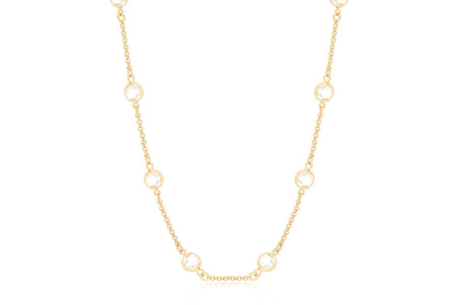 GARGANTILHA BANHADA EM OURO, VENEZIANA 0,80mm, 40cm COMPRIMENTO E ZIRCÔNIA QUADRADA 8mm, PARA QUALQUER COR DE PEDRA