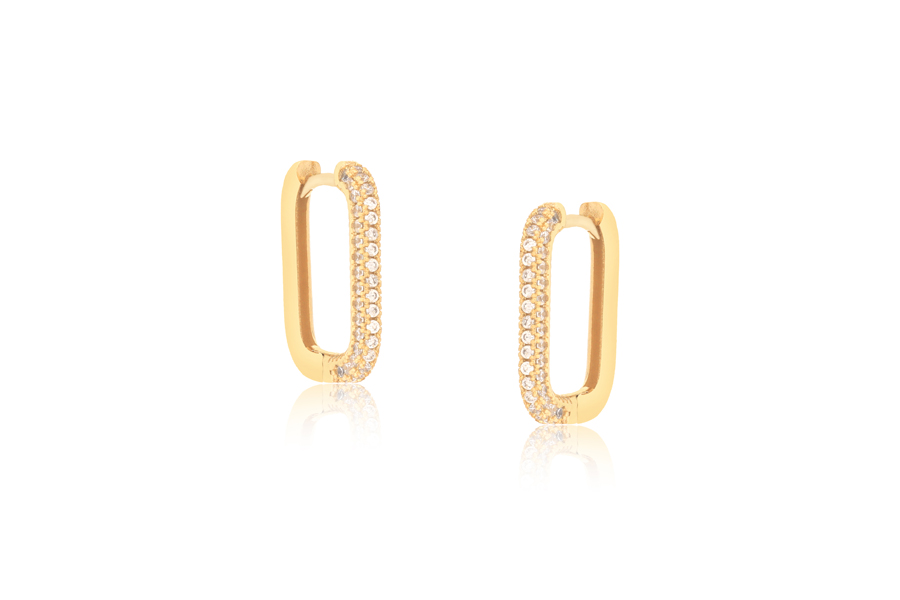 BRINCO BANHADO EM OURO 9mm LARGURA COM ZIRCÔNIAS BRANCAS OU COLORIDAS
