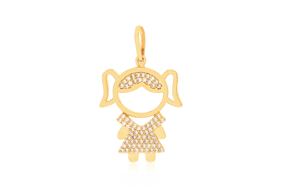 PINGENTE BANHADO EM OURO, MENINA 11mm ALTURA COM 3 ZIRCÔNIAS, COLEÇÃO COLLECT