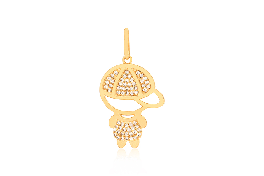 PINGENTE BANHADO EM OURO MENINO COM 3 ZIRCÔNIAS E 24mm ALTURA