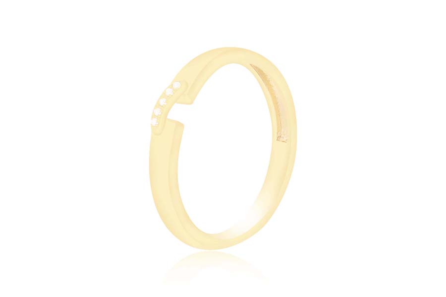 ANEL BANHADO EM OURO, 1 FILEIRA DE ZIRCÔNIAS E LATERAIS COM CORAÇÕES VAZADO