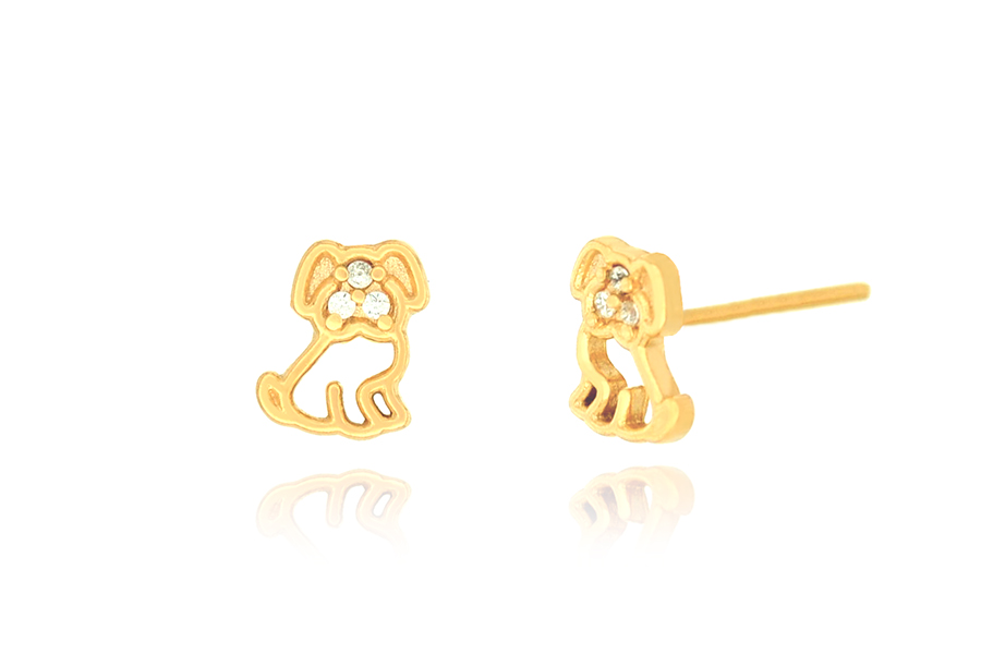 BRINCO BANHADO EM OURO, CORAÇÃO E PONTO DE LUZ 6mm ALTURA
