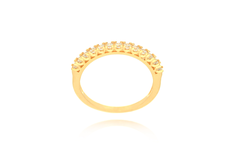 ANEL BANHADO EM OURO, ALIANÇA COM 29 ZIRCÔNIAS, TODO CRAVEJADO