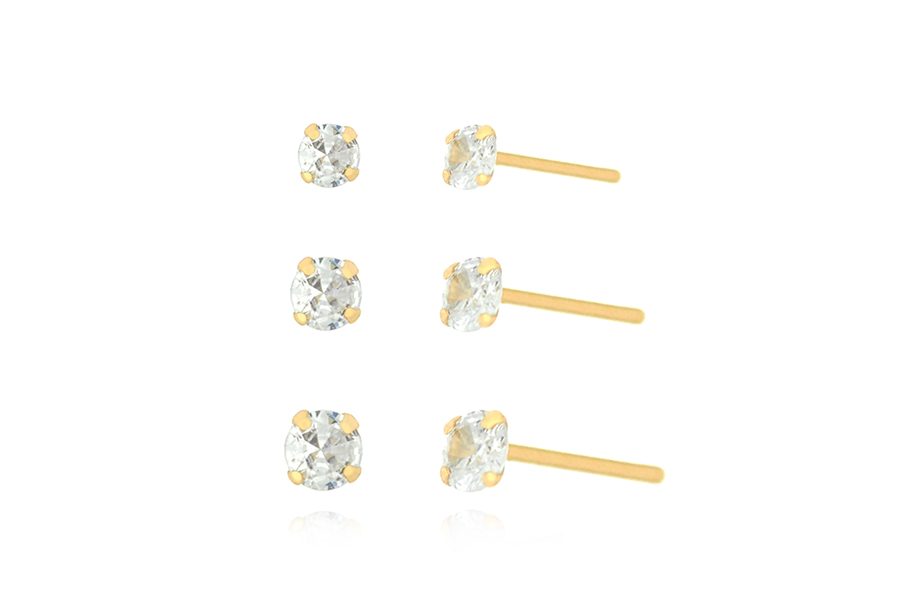 CONJUNTO BANHADO EM OURO, PONTO DE LUZ 4, 5 E 5,50mm