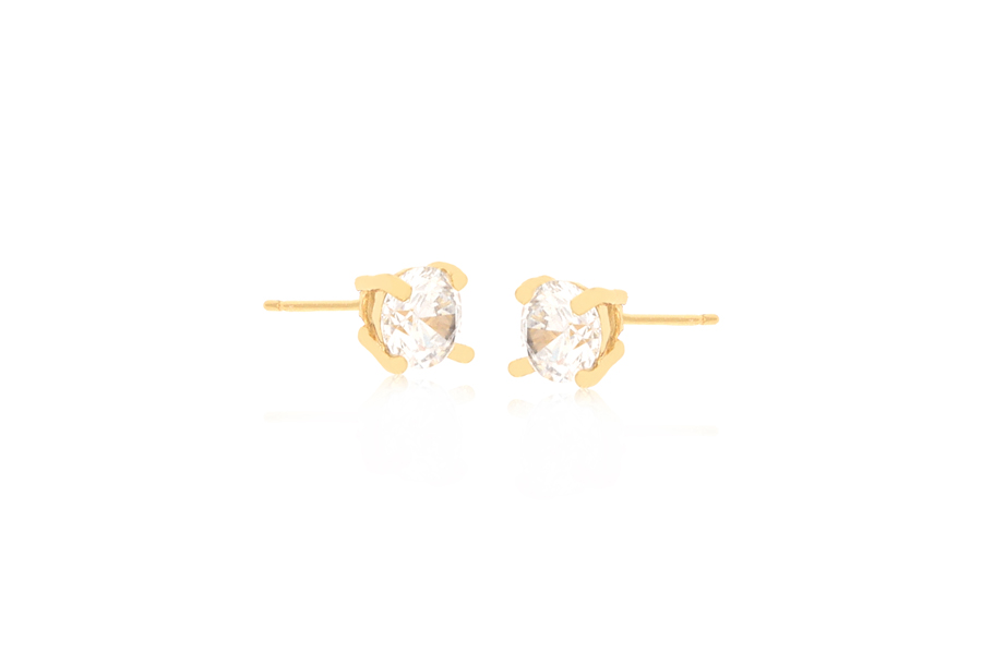 BRINCO BANHADO EM OURO, ZIRCÔNIA REDONDA 8mm, PARA QUALQUER COR DE PEDRA