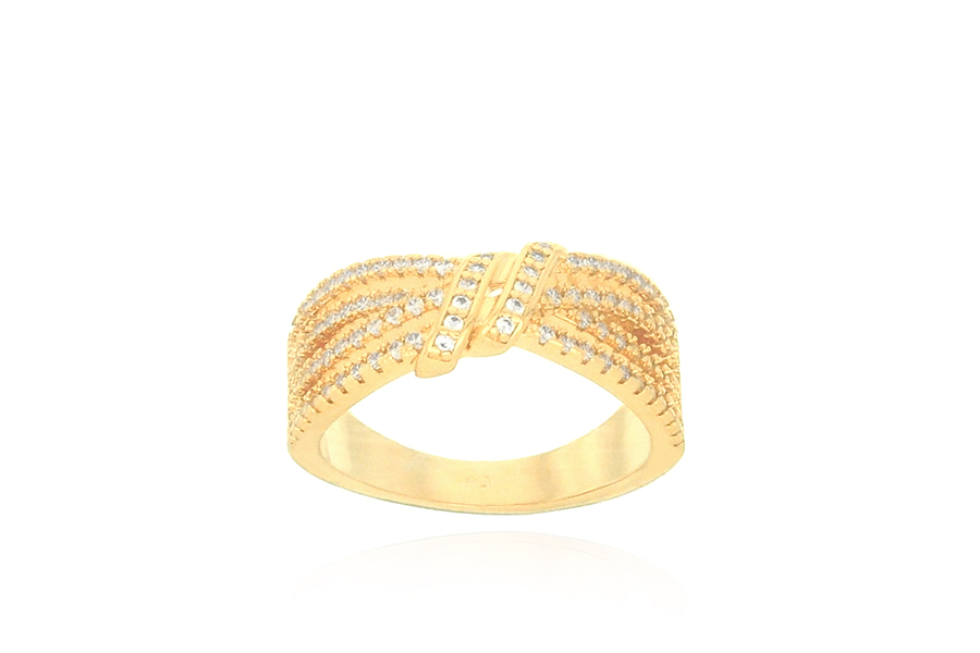 ANEL BANHADO EM OURO, APARADOR DUPLO, COM 2 FILEIRAS DE ZIRCÔNIAS CADA