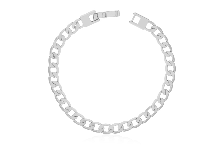 PULSEIRA BANHADA EM PRATA LEVE, CORRENTE ELO GRUMET 6,30mm, 19cm E 21cm COMPRIMENTO, SEM EXTENSOR E PESO 12,20g