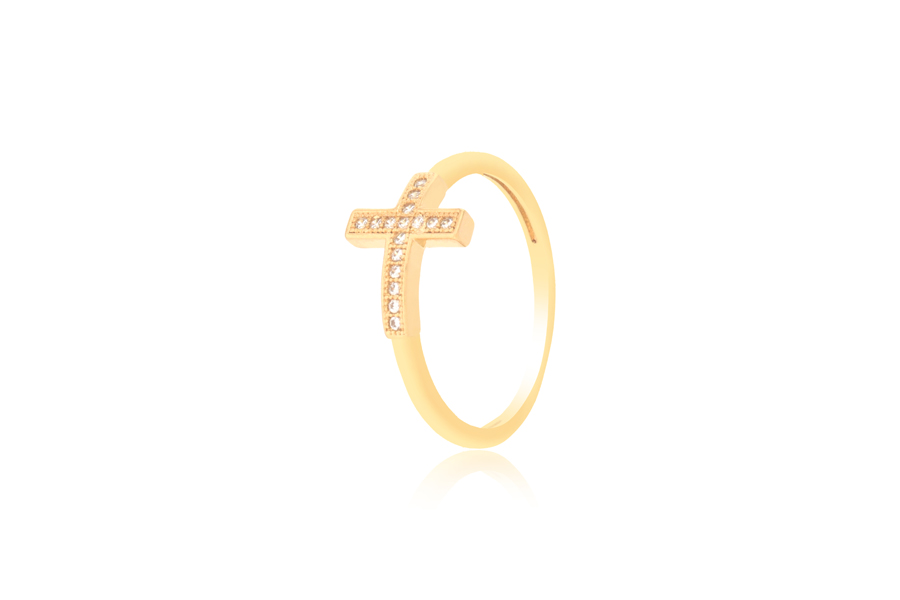 ANEL BANHADO EM OURO, APARADOR DUPLO, COM 2 FILEIRAS DE ZIRCÔNIAS CADA
