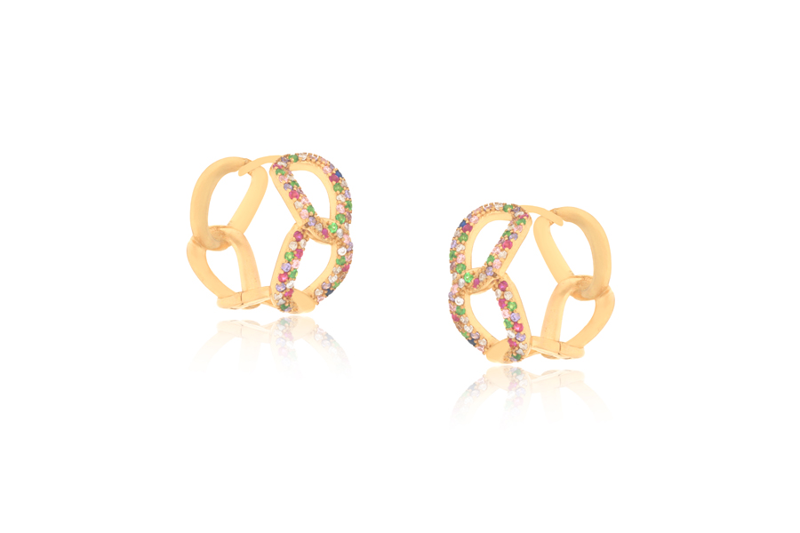 BRINCO BANHADO EM OURO, CRISTAL OVAL 13X10mm