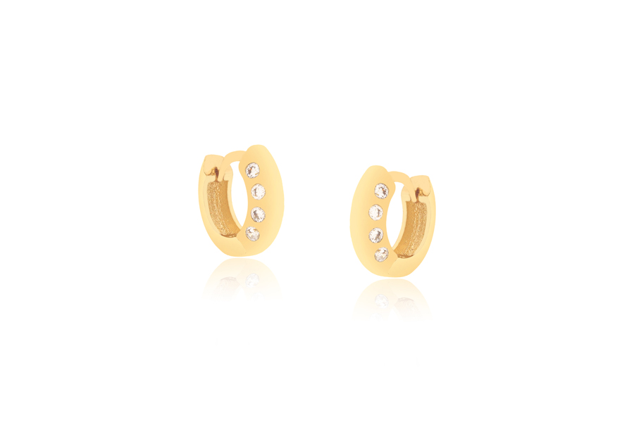 BRINCO BANHADO EM OURO 9mm LARGURA COM ZIRCÔNIAS BRANCAS OU COLORIDAS