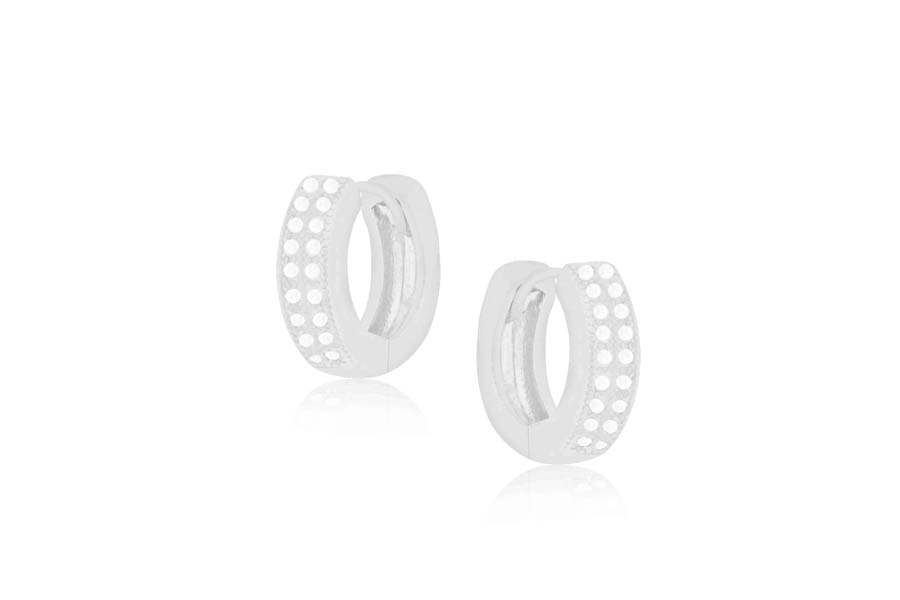 BRINCO BANHADO EM RÓDIO BRANCO, REDONDO 22mm DIÂMETRO, ZIRCÔNIAS REDONDAS E TRAPÉZIOS