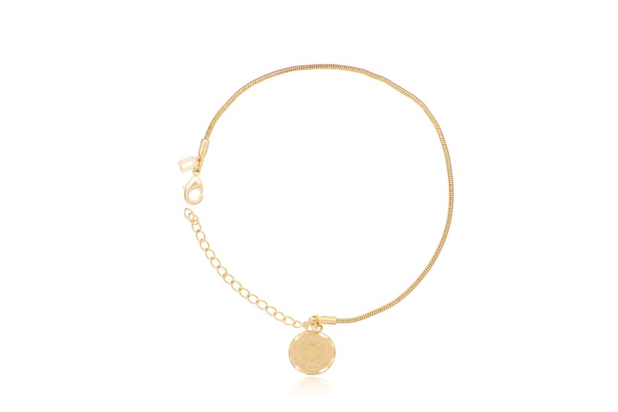 PULSEIRA BANHADA EM OURO, ELO PORTUGUÊS 3mm, ELO CORAÇÃO 4,20mm LARGURA, PINGENTE CORAÇÃO 11mm LARGURA COM MENINA