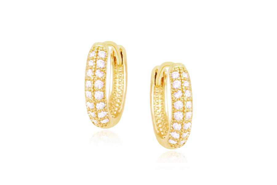 BRINCO BANHADO EM OURO, CORAÇÃO E PONTO DE LUZ 6mm ALTURA