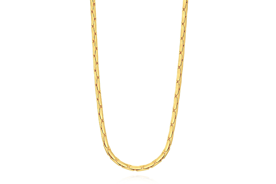 CHOKER BANHADA EM OURO, CORRENTE ELO 2,80mm, 35cm COMPRIMENTO, EXTENSOR 10cm COMPRIMENTO E PESO 12,70g