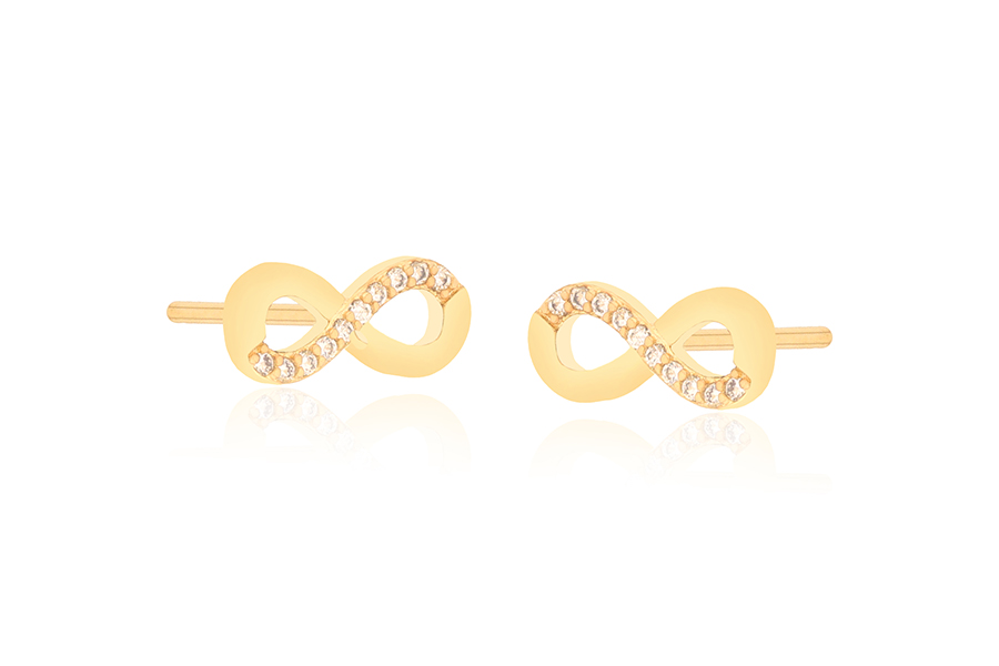 BRINCO BANHADO EM OURO, CORAÇÃO E PONTO DE LUZ 6mm ALTURA